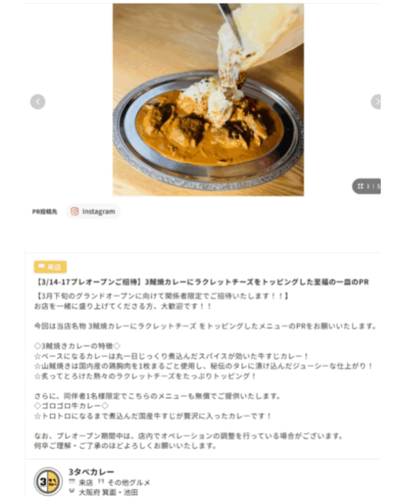 大西さん:特に上手な方は、文章も写真も全てが満足というとても完成度の高い投稿でした。グルメ特化のインフルエンサーマーケティングということで、写真や動画も美味しさが伝わるように魅力的に撮ってくれて本当にありがたいです。地元の方が投稿してくれることが多いので、近隣エリアの人がより足を運んでくれる状況が生まれやすくなっているとも思います。